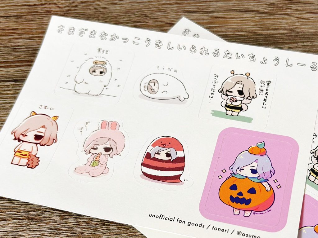 原稿中落書きしてた絵が気に入ってたので急に思いついて無配シールにしました。もらってくださった方ありがとうございました!まだ残ってるので通販にもつけさせていただいてます♡