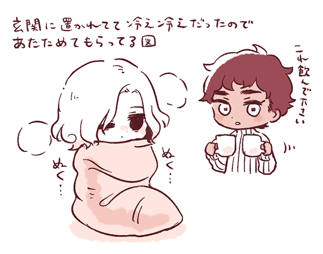 2024.12 TOP絵 おまけ サンタのプレゼントが届いた22歳トールマンの図デイドリに載ってるサンタ服大好きです。カブルーのはかっこいいしエルフたちが着てるやつは可愛くてずるすぎる…ああいうところで「隊長って可愛いのが似合うって思われてるんだな」と勝手に受信して気持ち良くなってます